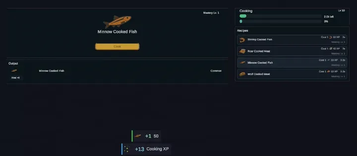 From Raw to Ready Cooking turns raw ingredients into effective consumables. Cooked food restores health and scales with progression. Cooking rewards preparation and long-term...