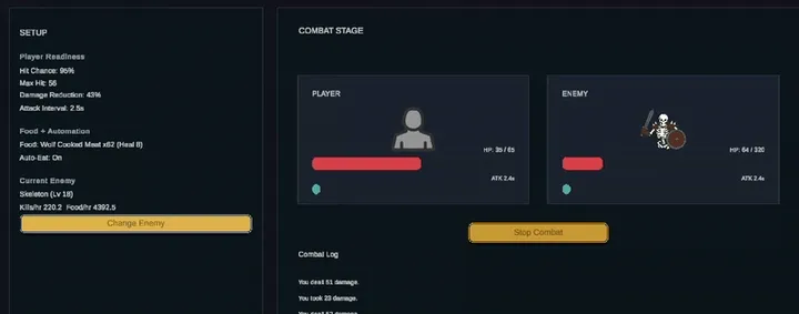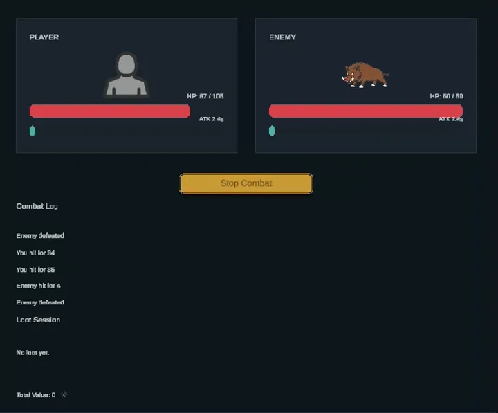 What We Did Combat now runs on a tick-based runtime system that simulates encounters in the background. Each combat tick processes attacks, XP gain, and drops through lightweight runtime services...