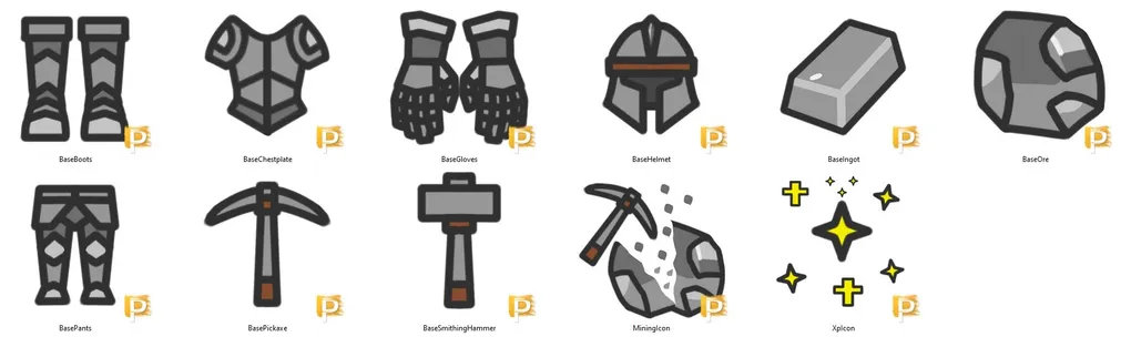 - Scalable art pipeline: This establishes the base layer for the tint and shader system that’ll dynamically recolor assets for each material tier (Copper, Iron, Silver, Gold, etc.).