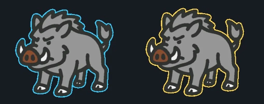 Each aura is drawn in real time using a custom GPU shader that outlines sprites without extra passes or texture duplication.